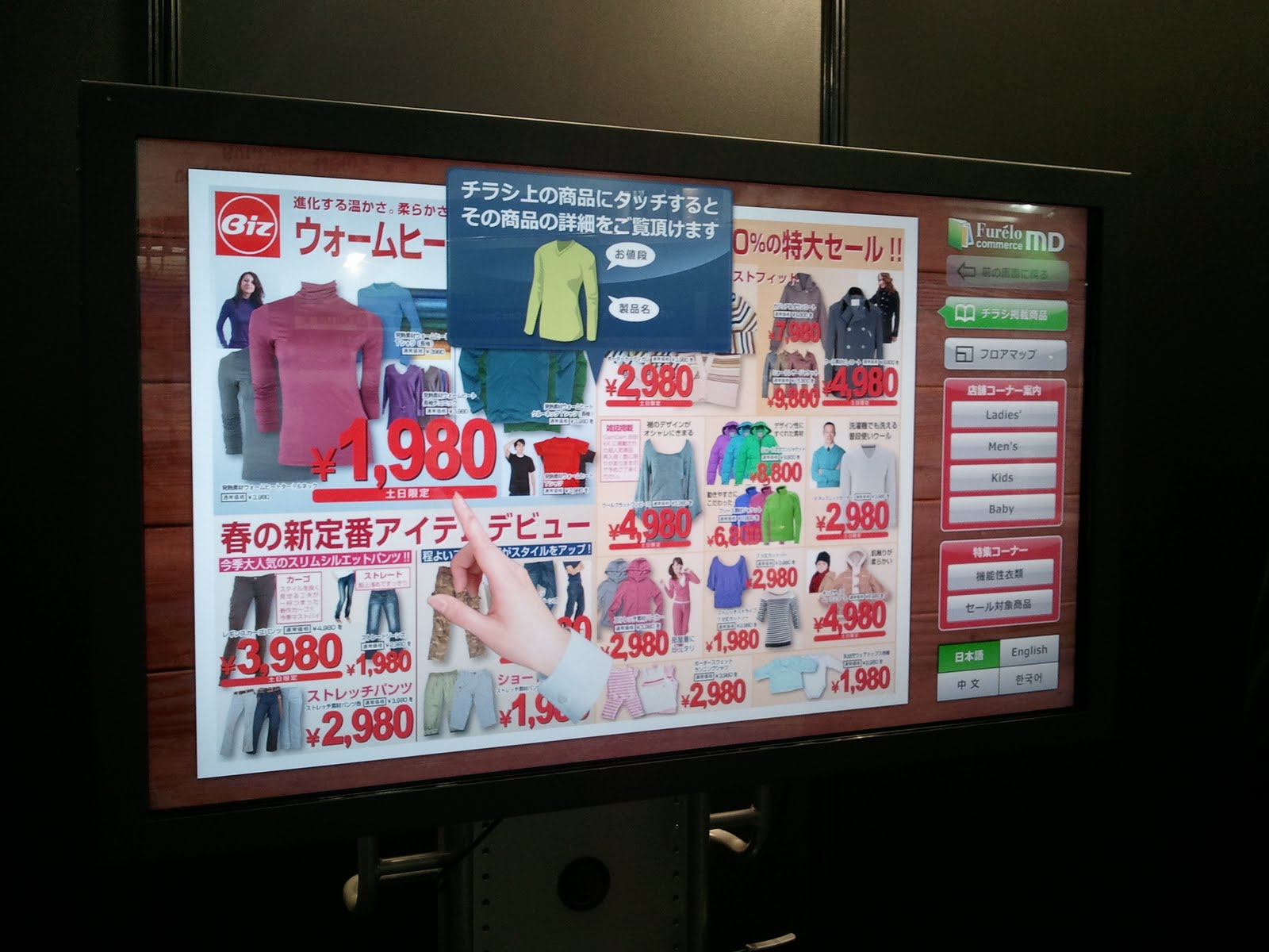 店頭のデジタルサイネージでリアルにチラシの情報が読めます。