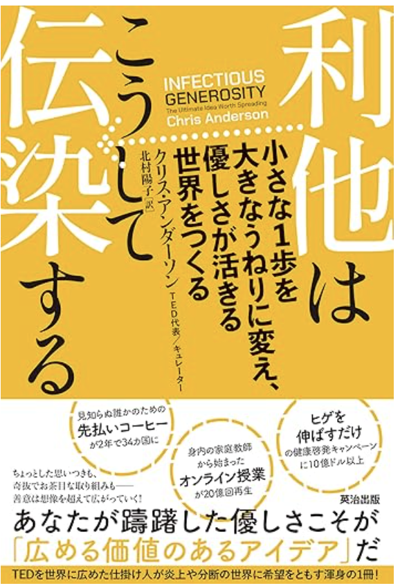 私たちはいま、分断や対立、そしてSNSでの炎上が日常となった社会に生きています。そんな時代だからこそ、クリス・アンダーソン利他はこうして伝染する――小さな1歩を大きなうねりに変え、優しさが活きる世界をつくるから大きな学びを得られます。