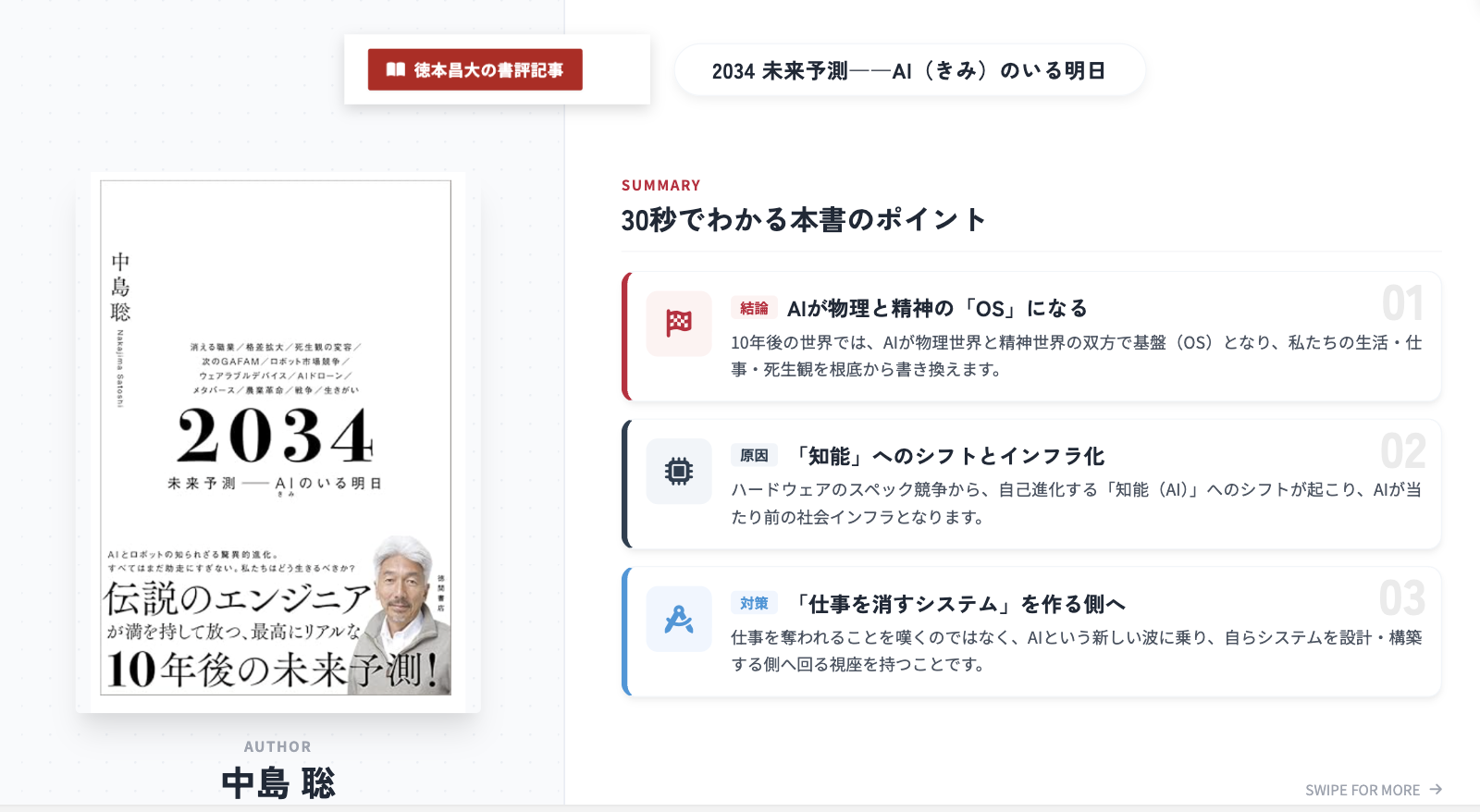これは単なる技術予測ではなく、私たちが10年後に直面する「日常」の予言です。 本書は全5章構成となっており、小説と解説を交えながら、私たちの生活のあらゆる「OS」がアップデートされる様子を深掘りしています。