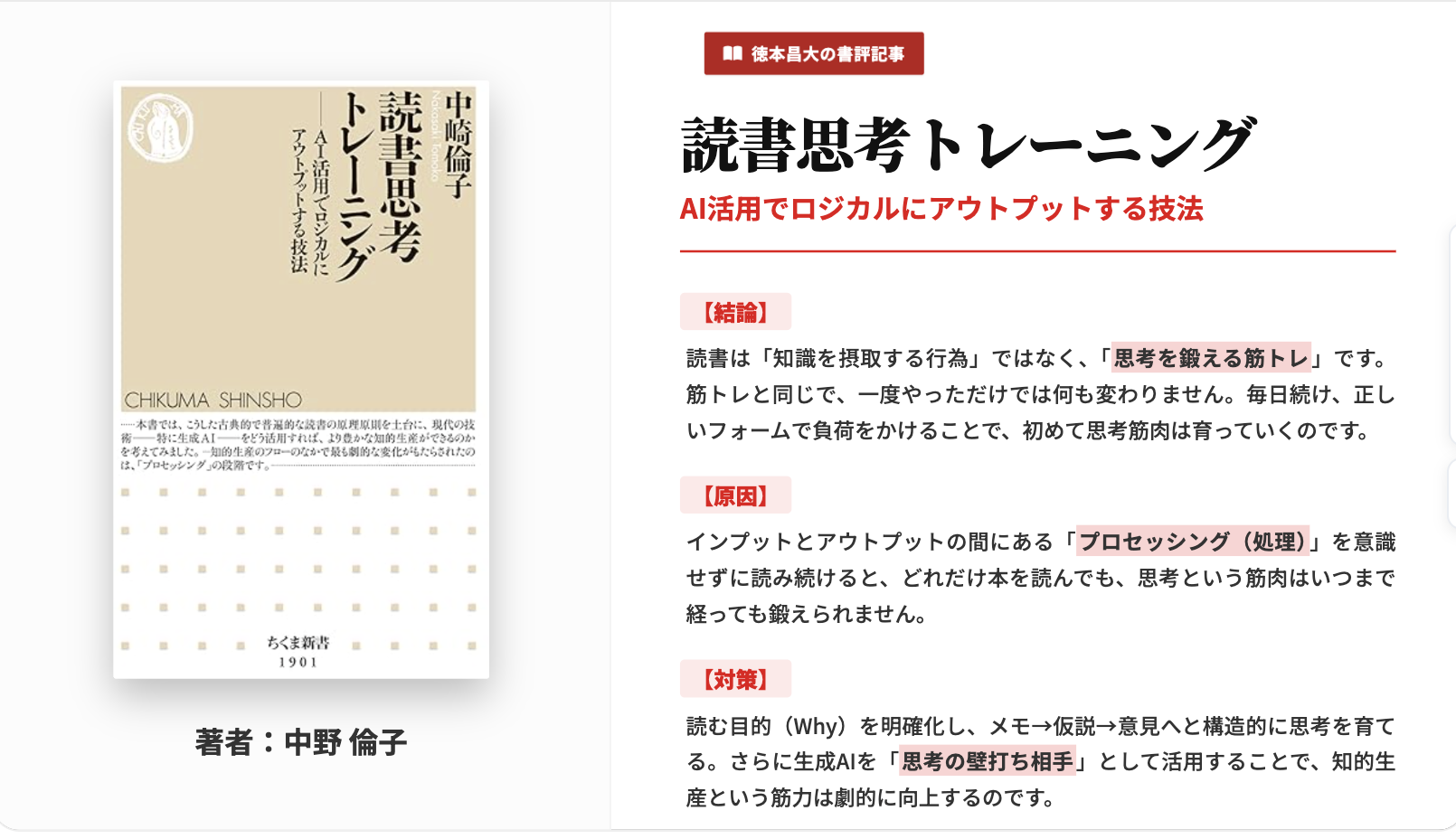 書籍:読書思考トレーニング――AI活用でロジカルにアウトプットする技法