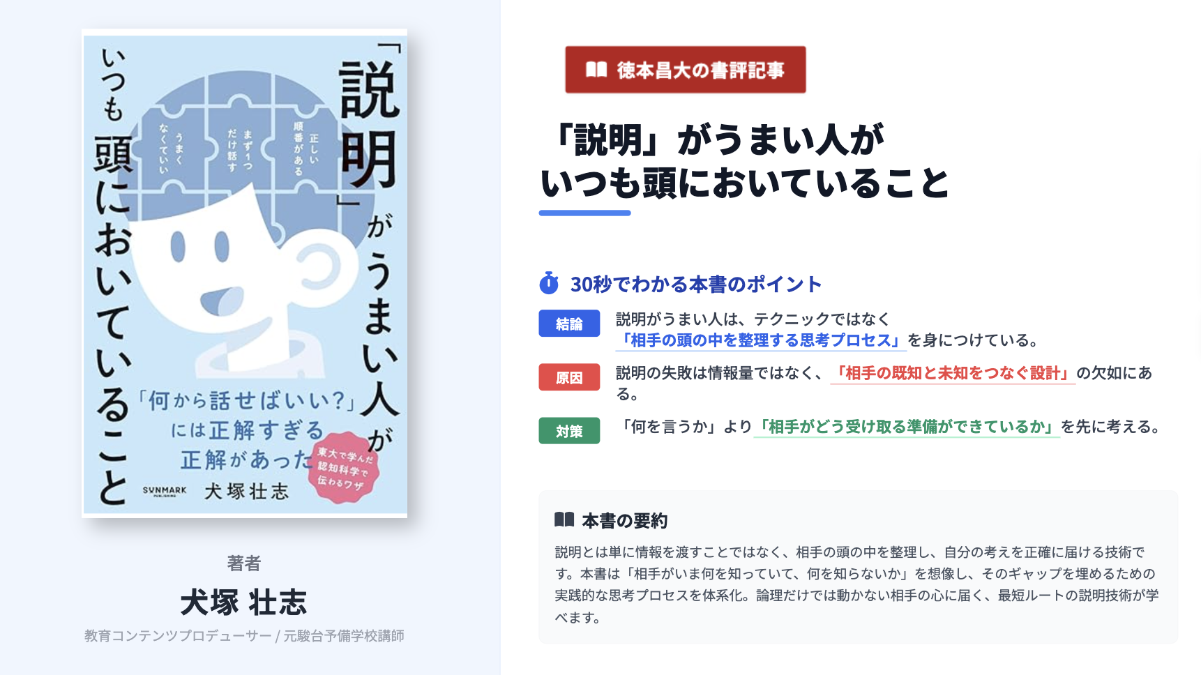 【結論】 :説明がうまい人は、話し方のテクニックを磨いているのではありません。「相手の頭の中を整理する思考プロセス」を身につけているのです。
