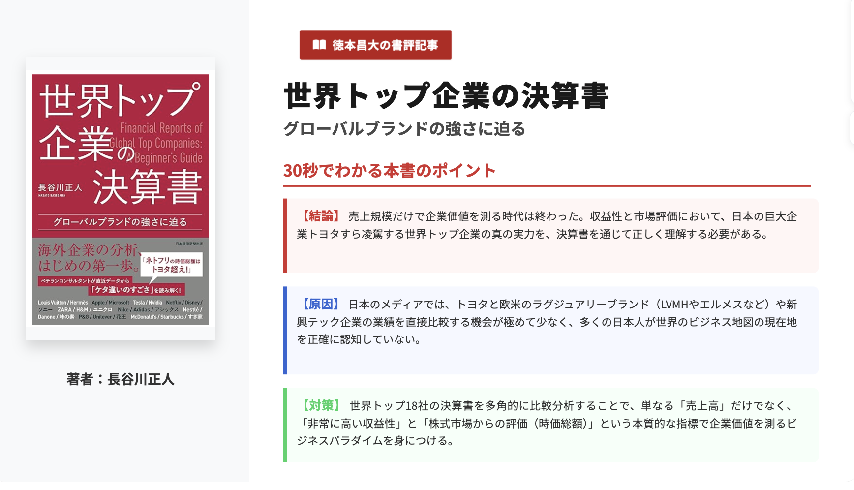 【原因】:日本のメディアでは、トヨタと欧米のラグジュアリーブランド(LVMHやエルメスなど)や新興テック企業の業績を直接比較する機会が極めて少なく、多くの日本人が世界のビジネス地図の現在地を正確に認知していない。