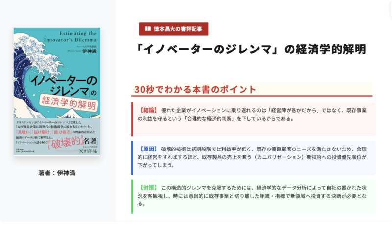 クレイトン・クリステンセンの名著『イノベーションのジレンマ』。多くのビジネスパーソンが知るこの概念を、最新の経済学の知見で鮮やかに解き明かしたのが、イエール大学の経済学者の伊神満氏の「イノベーターのジレンマ」の経済学的解明です。